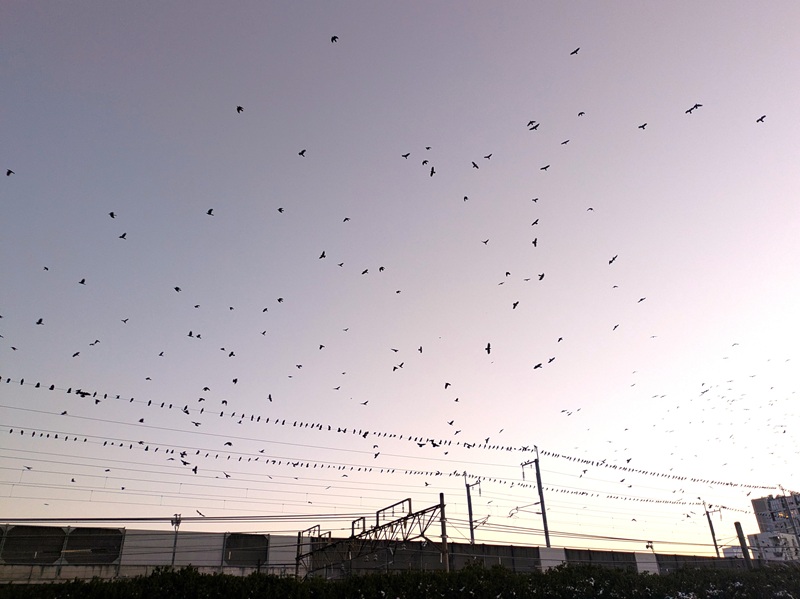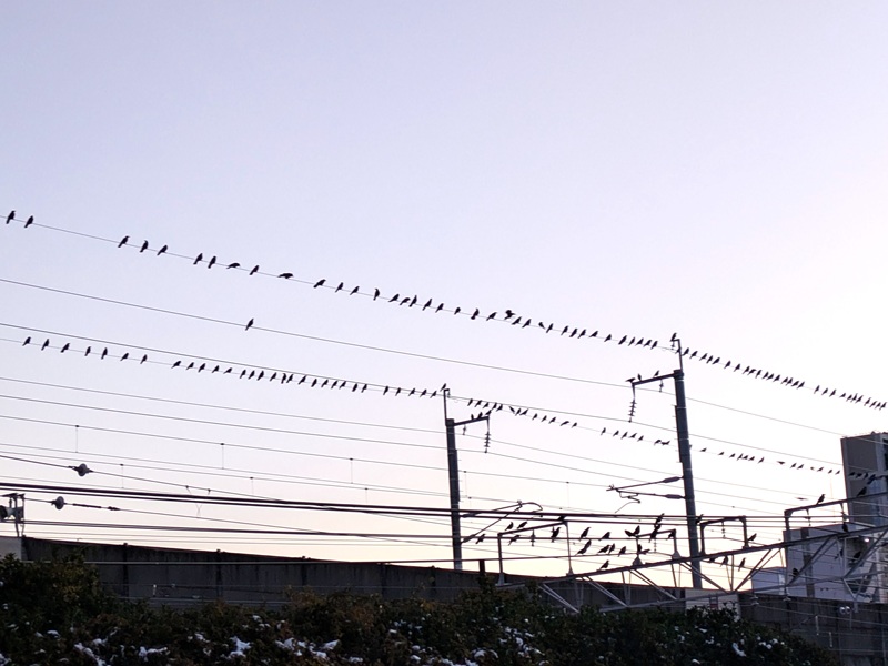 本日夕刻、市役所の線路沿いの駐車場で空を見上げるとカラスの大群が。ヒッチコックの映画、ザ・バード、鳥(古くて知りませんよね)じゃないけど、群れて飛ぶ姿にはビックリ。おそらく日中はどこかでエサをあさり、夕刻に線路沿いに来るのかも。これだけ数がいるということは、エサもあるということですが、どこで何を食べていることやら。 もっと冬季も深まればエサ不足で自然淘汰されるはずですが、それまでもひょっとして農作物に被害がでているのかも。先日もりんご農家さんからヒヨドリ等の食害について報告がありましたが、カラスもでしょうか。