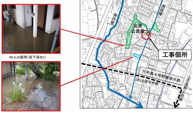 「北原地区浸水対策事業」=> 令和7年6月 長野市議会 補正予算 67号 川中島北原地区 雨水地下貯留浸透施設整備 | ドクセル